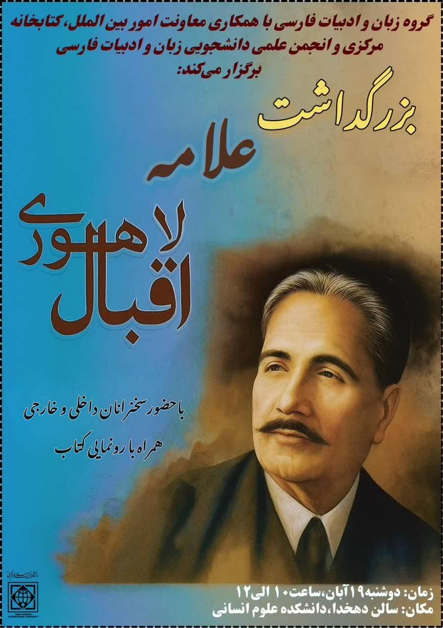 مراسم بزرگداشت علامه اقبال لاهوری با حضور جمعی از اندیشمندان، استادان، دانشجویان و علاقمندان با همکاری گروه زبان و ادبیات فارسی، معاونت امور بینالملل، کتابخانه مرکزی و انجمن علمی دانشجویی...