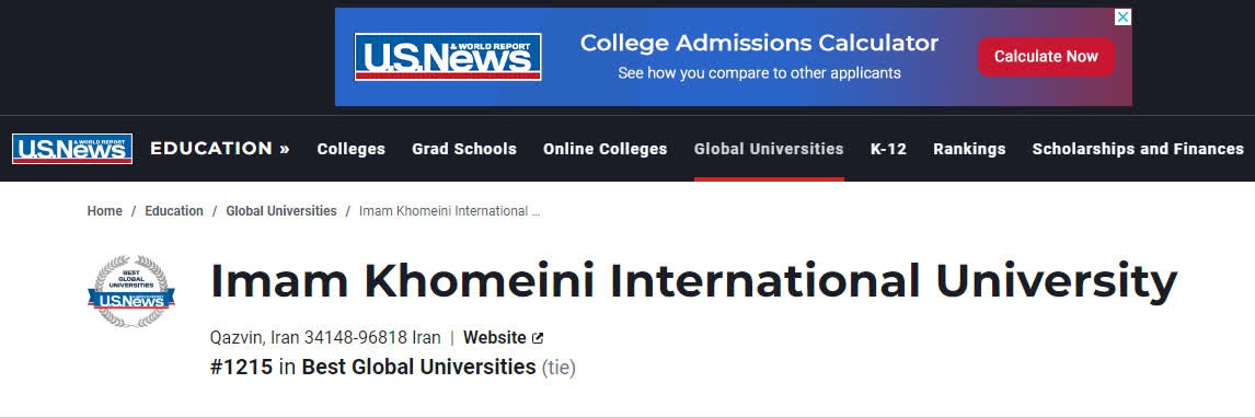 ارتقای 250 پله‌ای جایگاه دانشگاه بین‌المللی امام‌خمینی(ره) در رتبه بندی USNews
